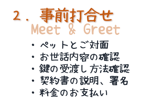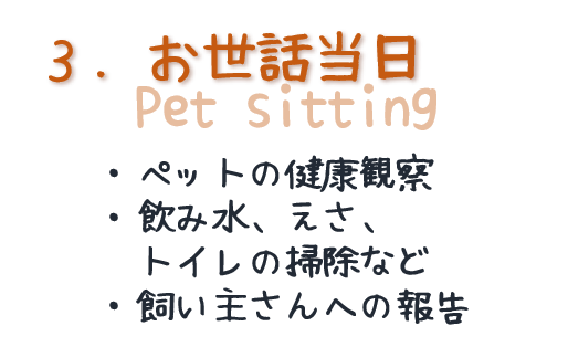 ペットの生活環境を変えることなく、ふだんと同じようにお世話をしますので、安心してお出かけできます。